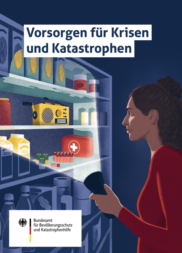 Für die Bevölkerung hat das BBK den Ratgeber »Vorsorgen für Krisen und Katastrophen« erstellt. Er fasst die Empfehlungen für verschiedene Notsituationen zusammen und stellt Checklisten bereit, die Sie bei der Umsetzung unterstützen. Der Ratgeber kann in Papierform beim BBK bestellt werden. Außerdem lässt er sich als PDF-Dokument herunterladen.