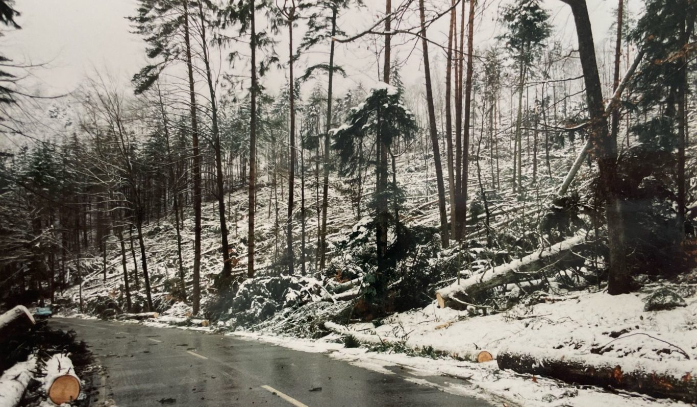 Straße im Würmtal nach dem Orkan "Lothar"